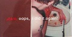 Why would you consider that picture depicts violence? It's got blood, but I don't see any violence... violence against one self perhaps, but not commonly understood violence... But yes, violence is much more acceptable than nudity... I too think this belongs in NBJ! |